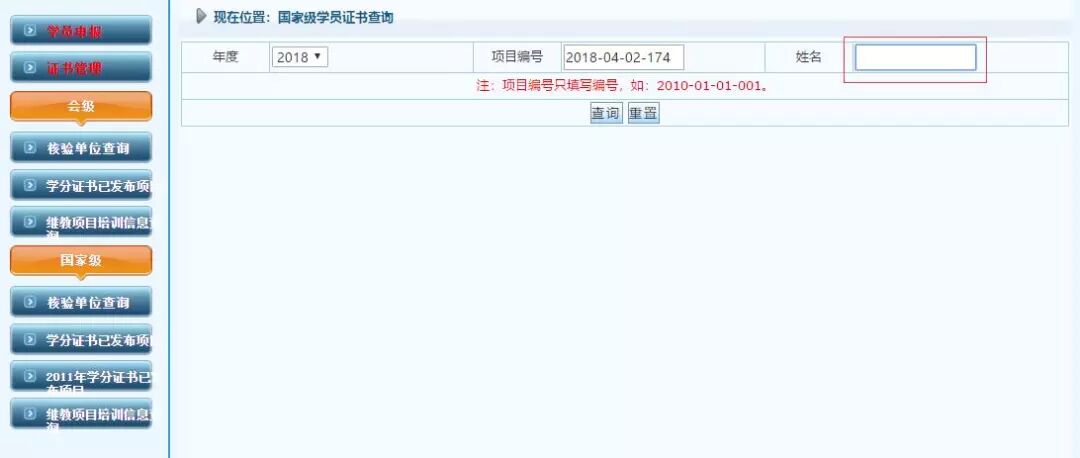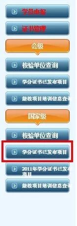 三、点击左侧“国家级”栏目下的“学分证书已发布项目”按钮。