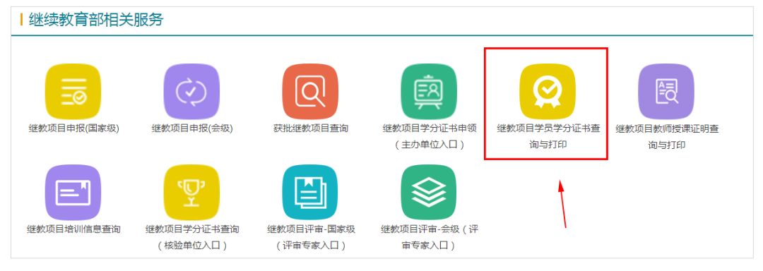 二、在“继续医学教育相关服务”中选择“继教项目学员学分证书查询与打印”。